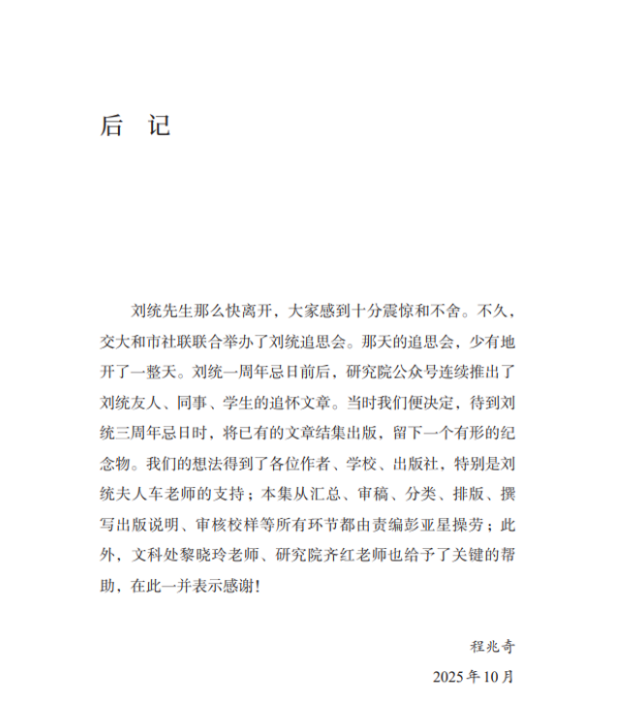 内容介绍:本书为纪念我国著名历史学家、上海交通大学教授刘统先生逝世三周年而编纂的纪念文集。收录了四十篇纪念文章,作者群体涵盖刘统先生的同仁、好友、学生及出版人,从多维度、多视角追忆其学术生涯、育人点滴、人格魅力与交往轶事。本书字里行间情感真挚,提供了大量一手、生动、珍贵的个人历史细节,全面展现了刘统先生在学术上的严谨创新、在教学上的诲人不倦、在为人上的赤子之心与侠义之风,以及在工作中的卓越贡献,读来感人至深,一位可亲、可敬、可爱的学者形象跃然纸上。本书的出版具有重要的史料价值与情感意义。